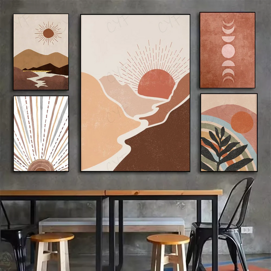 Morandi Color Matching Abstract Sun Moon Poster HD Art Sticky Wall Waterproof Home Living Room Be...