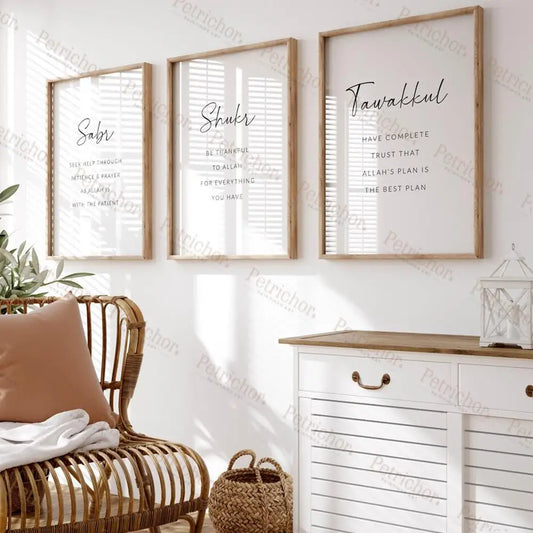 Islamic Muslim Gifts Sabr Shukr Tawakkul Printable Wall Art Prints Canvas Painting Poster Picture...
